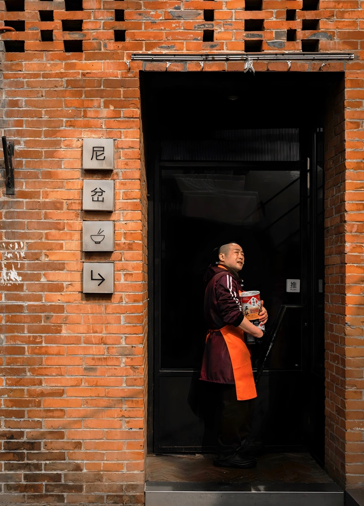 红砖砌就的店门口,他偶然回望。阳光洒落,映出他悠然的轮廓。或许,他正怀揣着对未来的期许,梦想着将那份独特风味传遍四方。在那扇门后,藏着多少故事与烟火,而他,便是这烟火人间的生动注脚。