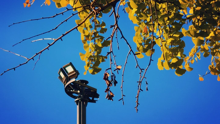 同样是在浙江省嘉兴市,vivo X100s手机再次记录下了傍晚时分的宁静美景。在这张照片中,天空呈现出蓝色和粉红色的渐变,云彩则以粉红色和紫色的层次感呈现。右侧的电线杆和左下角的街灯为画面增添了一丝城市生活的气息。建筑物和树木的轮廓在远处隐约可见,为这幅作品增加了深度和层次感。