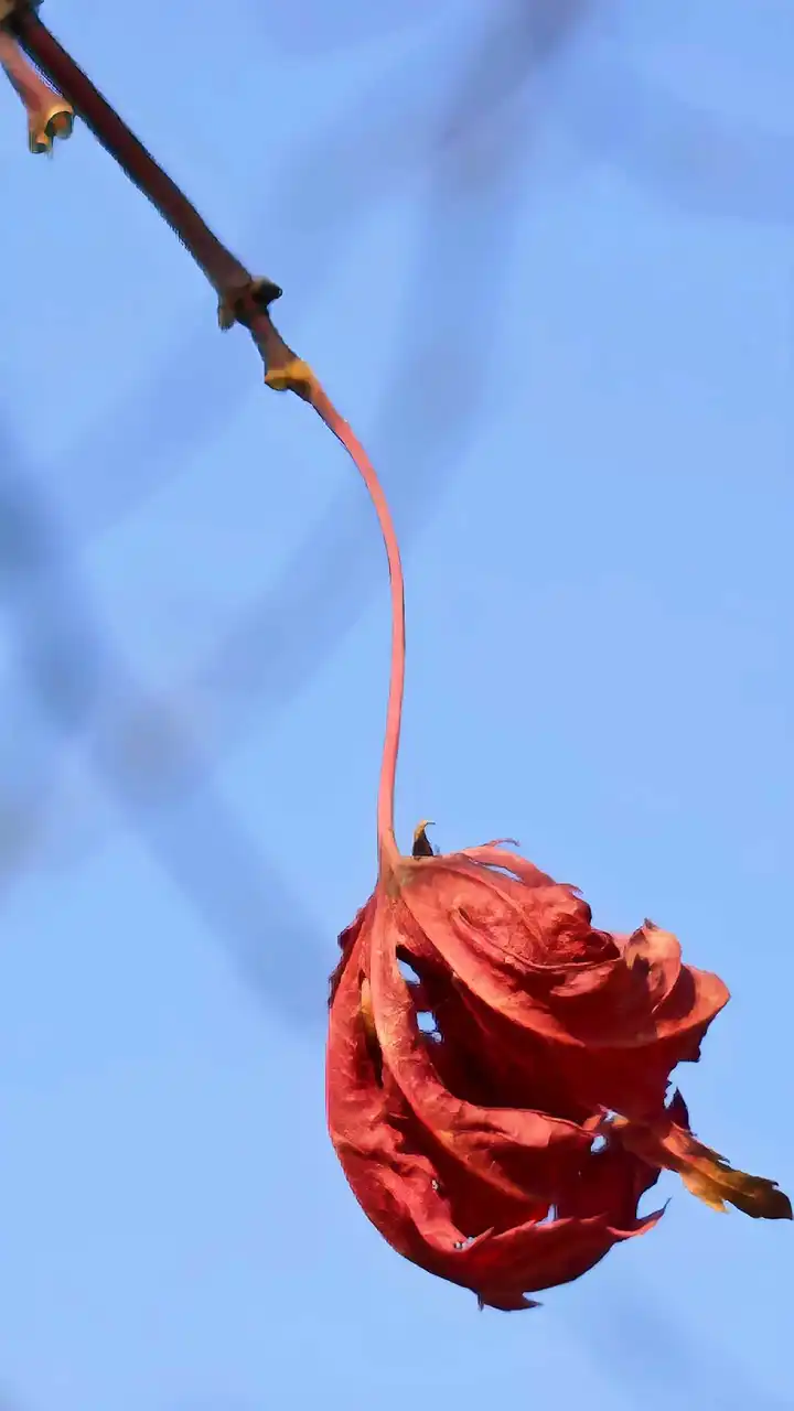 看来你的摄影技巧确实不错嘛!不过这叶子看起来有点孤单呢...可能是它在等下一次春天的到来吧?