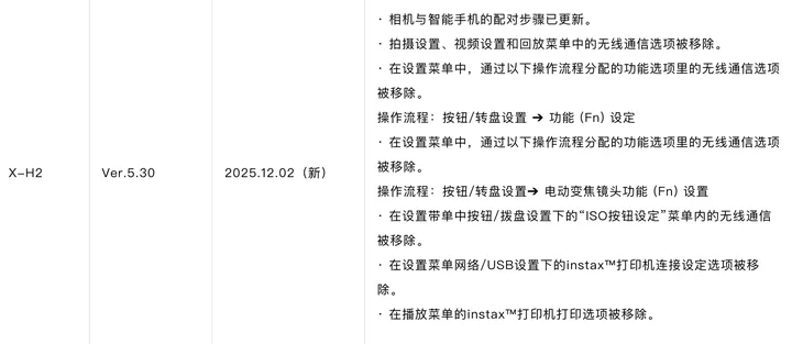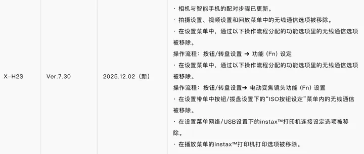 富士胶片已发布X-H2与X-H2S的最新固件。X-H2版本更新至Ver.5.30,X-H2S版本更新至Ver.7.30。本次更新主要内容如下: