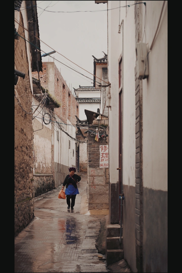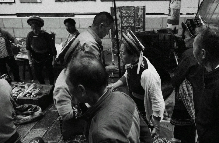 路过周城菜场看到两个嬢嬢在争论着什么,周围人来人往,市井气息浓厚。 周城村位于大理的白族聚集地,是国内最大的白族自然村,隶属大理市喜洲镇。村庄座落于大理市北部,西靠苍山云弄峰,东临洱海桃源码头,南距大理古城25公里,北连著名的蝴蝶泉景区。总辖区4.7平方公里,现有16个小组,共约2400多户,[7]常年居住人口均在10000人以上,99%的人口都是白族。[4]村里房屋建筑多为“三房一照壁”,“四合五天井”封闭式。扎染制品是当地的传统工艺,有丰富多彩的民族节日,其中最著名为“三月街”。被形象的喻为“一街赶千年,千年赶一街”。村里房屋建筑多为“三房一照壁”,“四合五天井”封闭式庭院形式构建的白族民居。有独成一院,有一进数院,平面呈方形。造型为青瓦人字大屋顶,二层、重檐;主房东向或南向,三间或五间,土木砖石结构,木屋架用榫卯组合,一院或数院连接成一个整体,外墙面多为上白(石灰),下灰(细泥)粉刷。在周城,还有丰富的民族扎染制品。扎染是周城白族人民明末清初以来的民间传统工艺,扎染工艺品集文化、艺术为一体。扎染布由手工针缝线扎,反复冷染浸制而成。