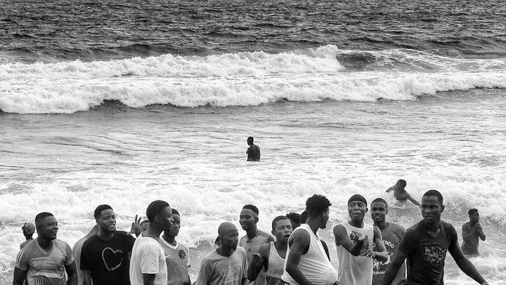 今天是利比里亚国庆节,下午约三个健身房的朋友去17街的海滩。这里的海滩之前延海岸线“无限”延伸,因为有一些简陋的草棚屋黑人酒吧,是蒙罗维亚平民黑人度周末的地方,热闹,活力四射。这次来,沿海已经修起铁栅栏,收费约1美元。海滩两侧已经被堵死,只剩大约三百米的沿海沙滩,人也少了很多。原来卖酒水、零食和烧烤的商贩很多,现在买啤酒、饮料、烧烤只能到沙滩外面的商店去买。偶尔会有头顶塑料盘子的小女孩儿卖炒花生和炸芭蕉片。沙滩也是一个国家的资源,沿海的高档酒吧、酒店越来越多,自然,能够让大众娱乐的沙滩越来越少。