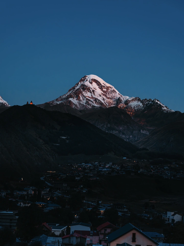 1张晨光中的卡兹别克雪山
