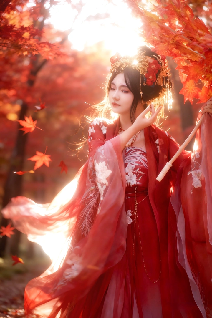 2025年初冬,成都电子科大的银杏正黄,1122汉服节如约而至。抱着拍照片库存的心态闯入这场盛会,在路边礼貌抓一位汉服小姐姐拍照。 镜头下,立于电子科大满地金黄之中,光影恰好落在飞仙髻与披帛间,一颦一笑皆是古意。细细修图,更将背景换作红枫林,当现代校园的喧嚣隐去,一幅"人在画中游"的惊艳画面便跃然眼前。