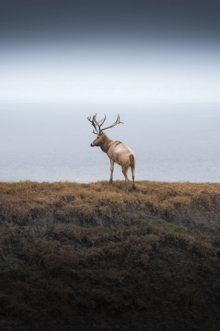 大雾深处,一头麋鹿回眸向我看来,远处是海边的滩涂,已经完全被大雾所笼罩,充满了神秘的氛围。拍摄时正是盐城的秋季,草皮渐黄,与麋鹿相得益彰。使用无人机3倍长焦拍摄,拍动物很看运气,刚按完快门,下一张就跑到雾里去了 拍摄于盐城黄海野鹿荡,往海边飞了两三公里 Shot on Dji air3s