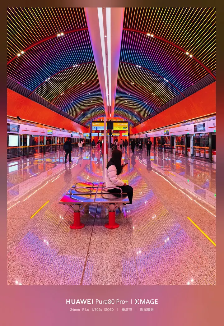 地铁站穹顶淌着渐变的光,像把烟火裹进温柔的笼;叶尖漫开红与紫的潮,落英铺成春的绒毯。匆忙站台藏着静,细碎叶隙裹着暖,这些浓淡不一的色,是生活偷偷塞的软糖:抬头是霓虹的柔,低头是草木的甜,连呼吸都浸着治愈的暖。 ---------------------------------- ■ 手机:HUAWEI Pura80 Pro+ ■ 地址:重庆·北碚