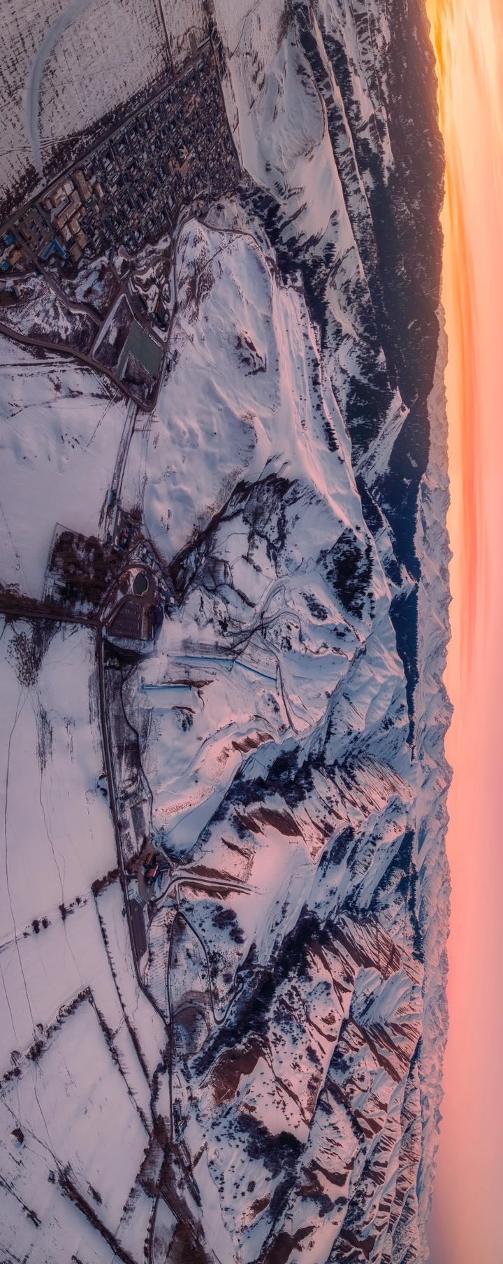 #旅行大玩家#原创北国#北境之北 冬日的朝霞 温柔的洒落河谷雪山 将天空染成粉色 将雪山染成粉色 所有浪漫的辞藻 都无法描述此刻的美 静静的让它印入眼眸 刻入心里 「伊犁河谷的冬日」