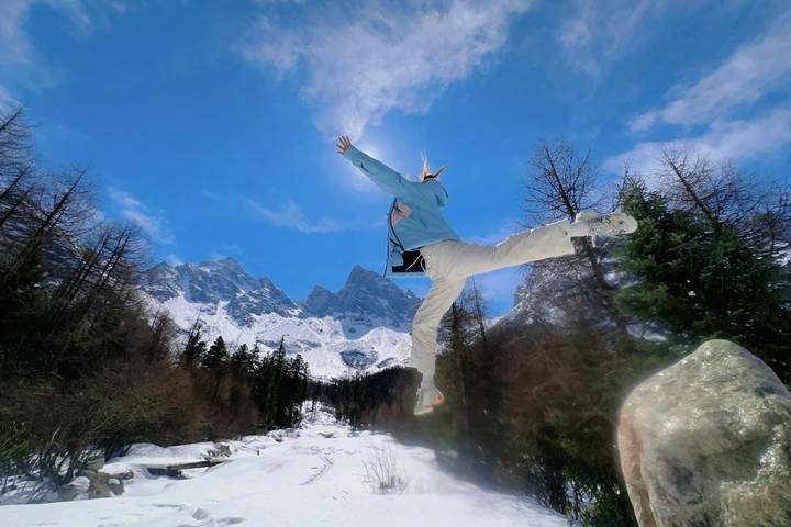很久没有上传作品,这次用手机拍两个朋友来一组腾空找,时而像夸父追日,时而又像乔丹灌篮,不得不说,毕棚沟的雪景是真的美