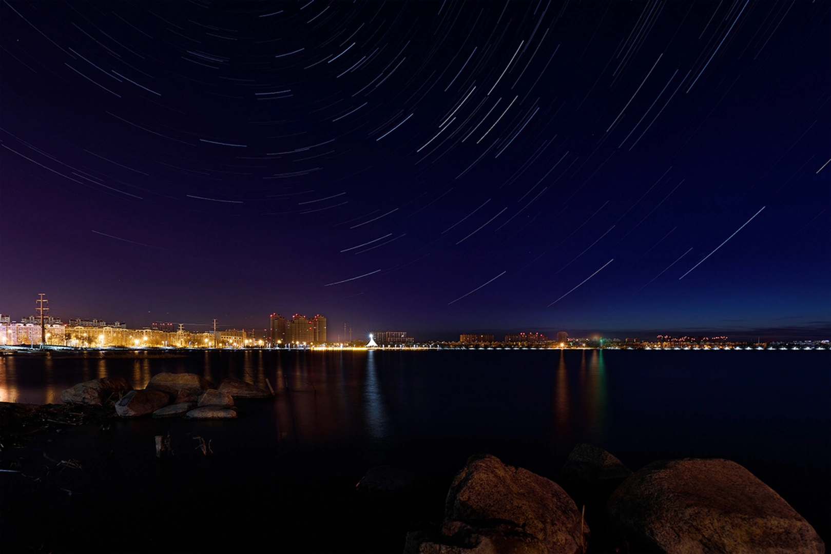 黑龙江省,大庆市,滨州湖上空的蓝色冥想[嘻嘻][嘻嘻] 共计拍摄75张照片,每张30S,后期堆栈而成![微笑][微笑]