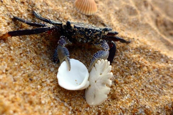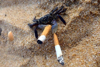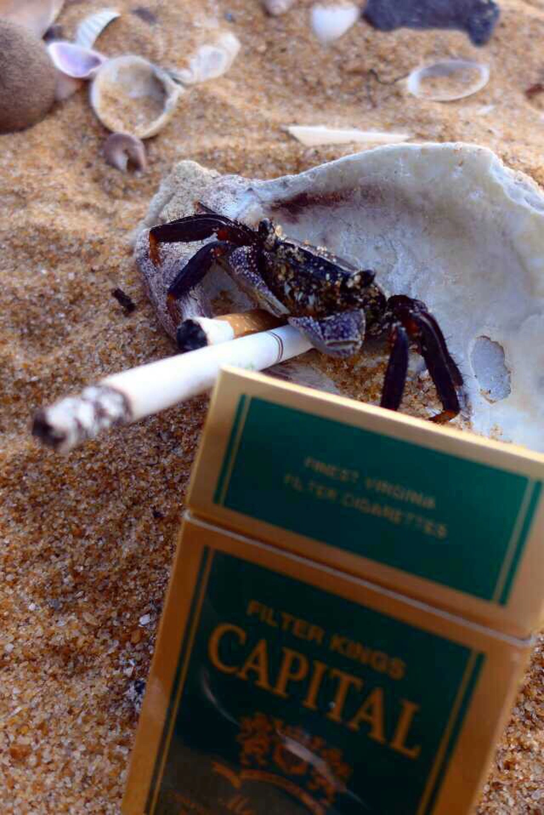 和螃蟹🦀️逗闷子,顺便给香烟做广告。然后把🦀️放走了。这家伙给什么就夹什么。上帝,饶恕我贪图玩乐而犯下的罪恶吧🙏!