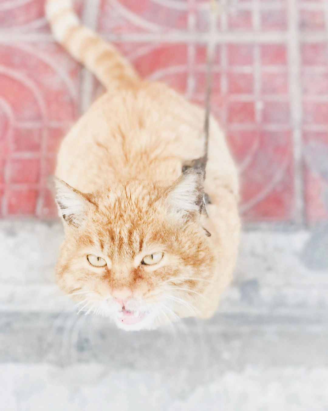 被禁锢得橘猫🐈 一整个冬天都被拴在外面 心疼它,想要把它收养 可惜它有主人,只能每天喂它吃的