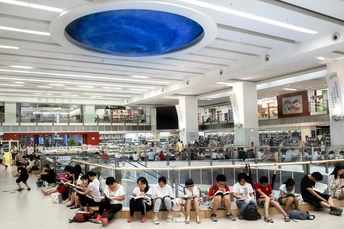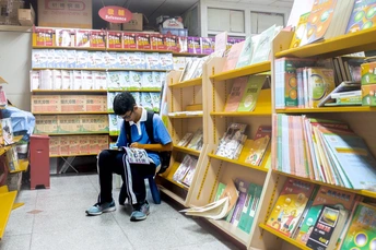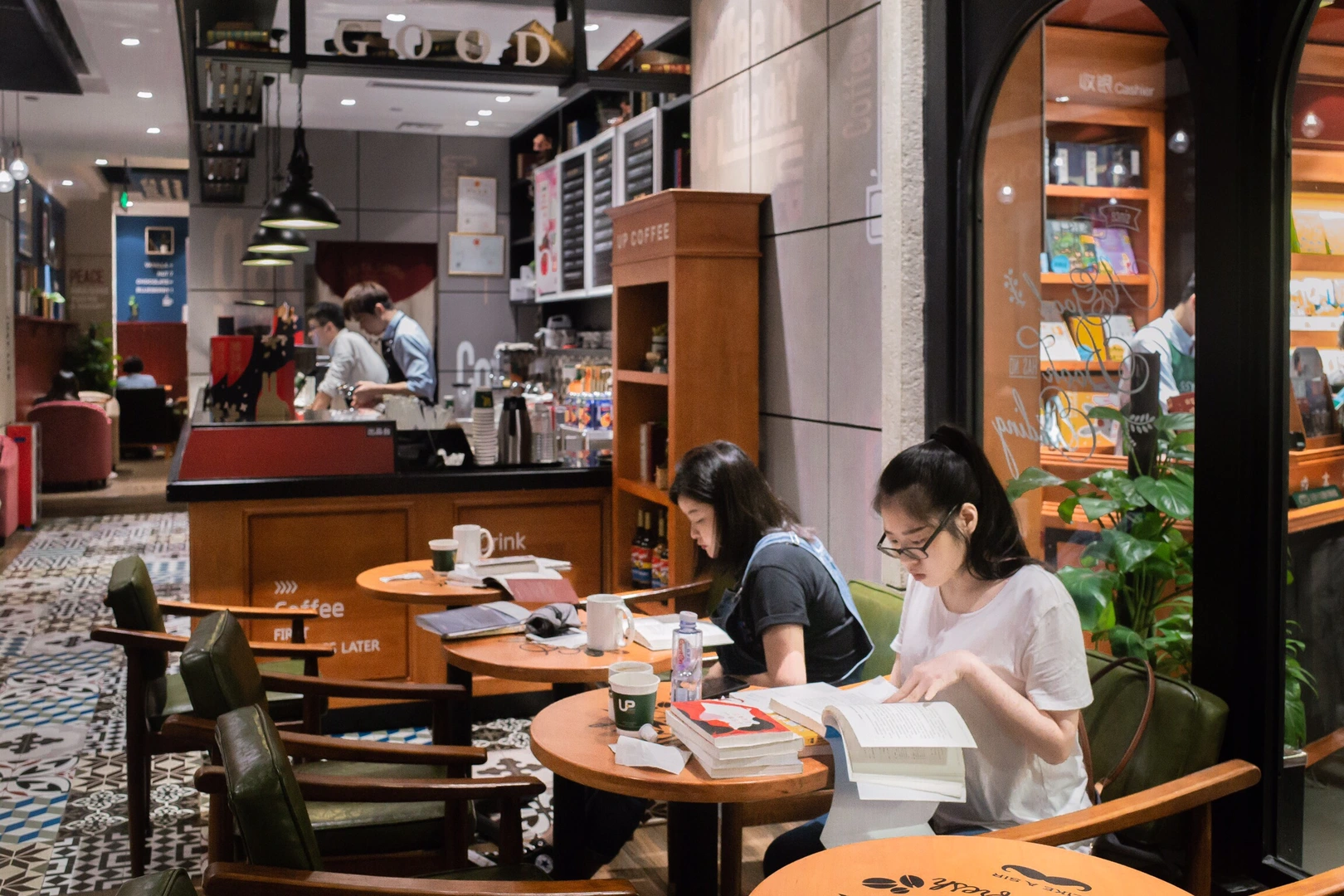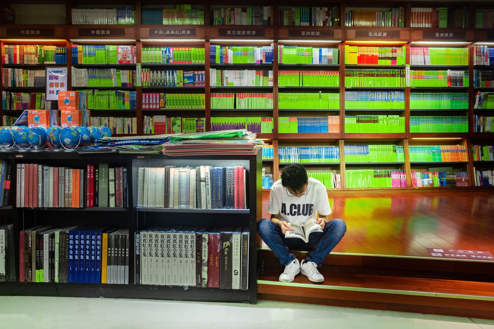 人们拿起书本,不管身外任何地点,都能投入阅读。