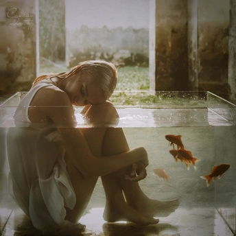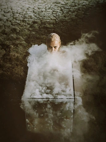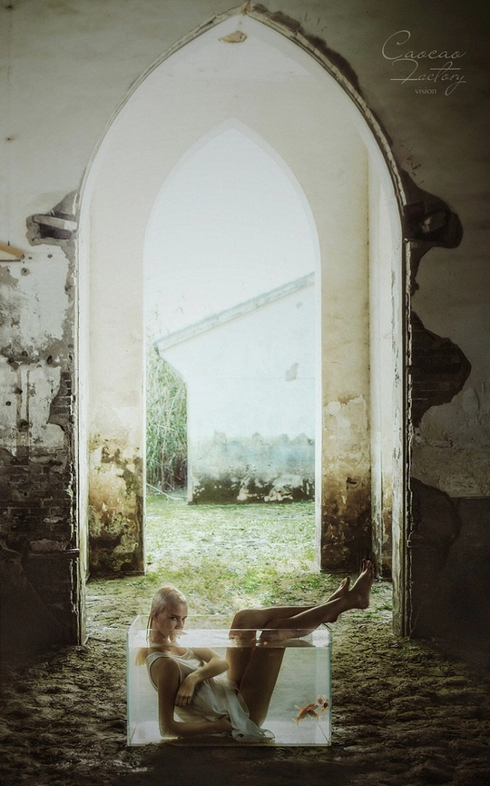 「Origin」 从水里醒来,走向通往光明之路,教堂那道门代表着黑暗和光明的界限,人性有善恶之分,路也有黑暗光明之别,在水里挣扎纠结,努力……