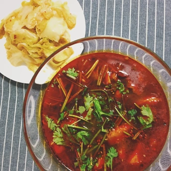 昨晚做了一个水煮鱼 我不过是倒了杯可乐的功夫 就被某些人吃成水煮香菜了