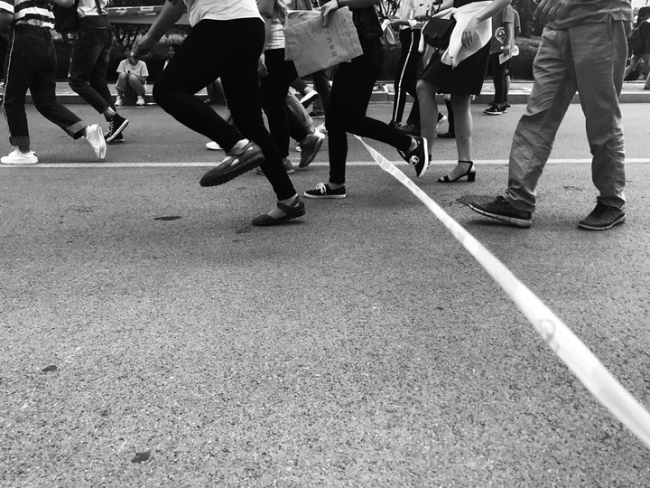 新生报到,家长都来了。这条警戒线让我联想到了起跑线。