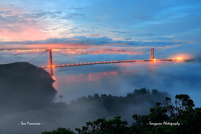 美国加州旧金山,雾色中的金门大桥。 图片故事尽在微信公众号BestCityscape