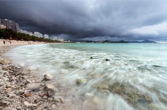 阵雨来临前的海面,延时曝光配合广角将白环拉的更加气势 后期压暗天空体现阵雨的来临