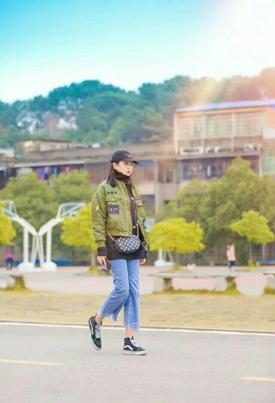 #辛巴校园街拍# 今天出了温暖的太阳于是我们就拍到了温暖的小姐姐[em]e4006[/em] 鸭舌帽配军绿小夹克很酷,高领毛衣又很保暖,小姐姐这颜值都引出了彩虹哦~~[em]e106[/em] 坐标:湖南工程学院体育馆