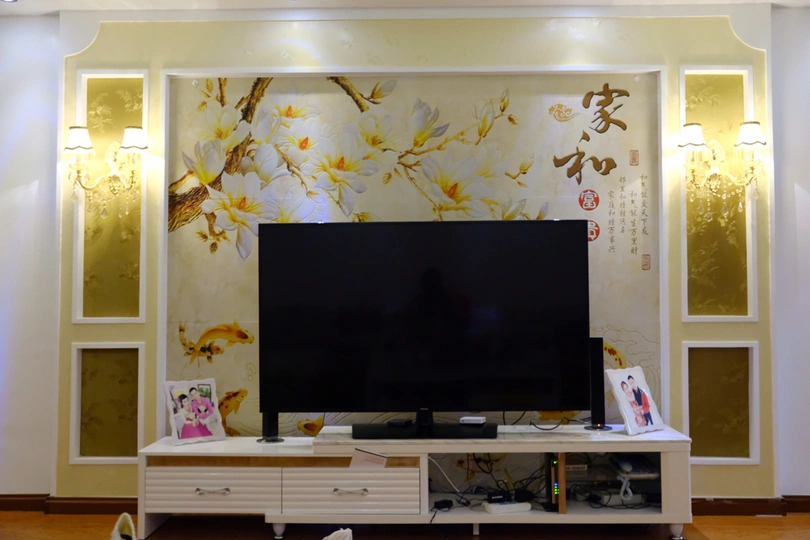 新手,自己在家找感觉,拍的自己家电视墙和壁灯