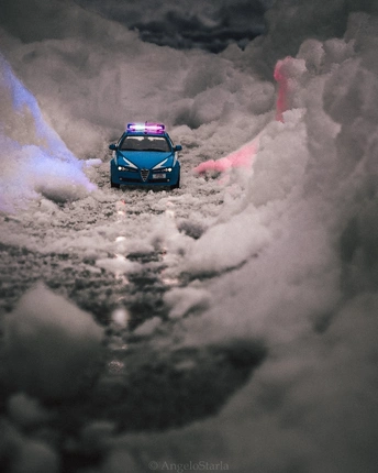 Morning rescue. 道具:咸阳初雪,1:43 Alfa Romeo 159 Polizia. 后期效果:photoshop,lightroom @闷顿