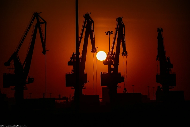 码头落日