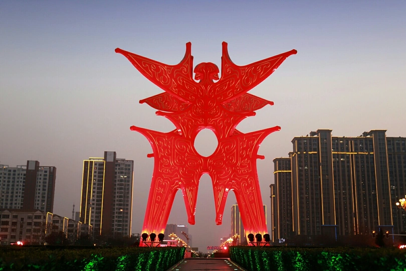 商丘的两个标志性雕塑——“商”字&玄鸟