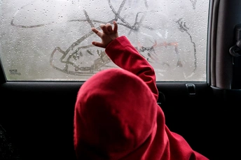 Kamula和其他小朋友一样,喜欢在下雨的车窗上乱画。
