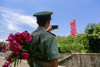 一位武警官兵精心采摘鲜花后(尽管知道鲜花有毒,但营区只有这种花🌹)通过视频的方式献给母亲,以寄托对母亲的思念之情。 [喜欢][喜欢][喜欢]