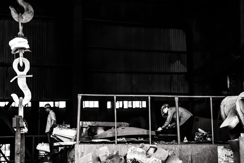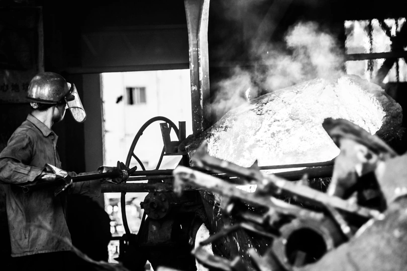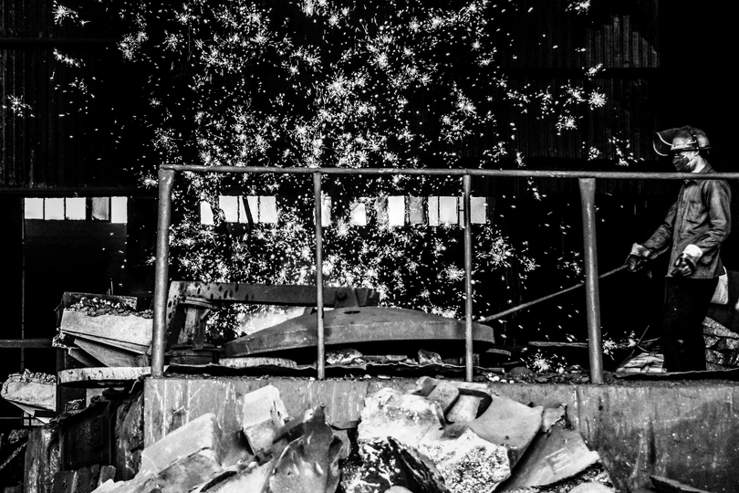 《铁厂温度》 照片拍摄于淄博当地的炼铁厂,拍摄时间2015年的10月份,拍摄对象是炼铁厂的工人,照片记录了工人炼铁的过程以及他们的工作状态,在铁厂这种高温的工作环境下透露出的是工人的艰辛,体现了工人吃苦耐劳的精神。拍摄这组照片主要是对工人日常工作的纪录,以赞扬劳动人民的伟大。