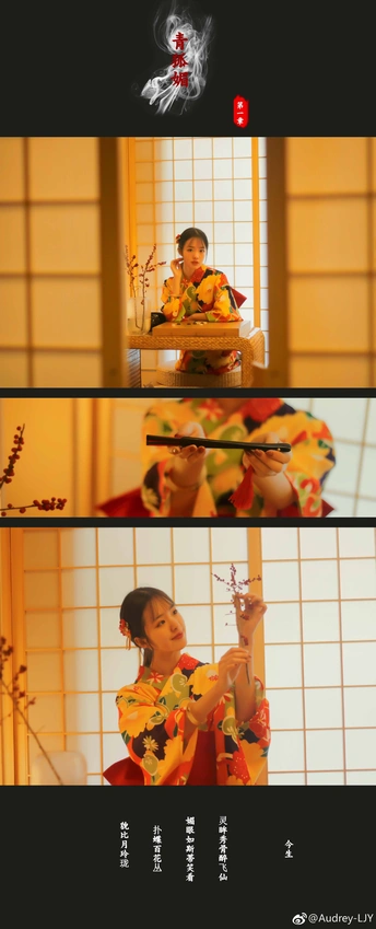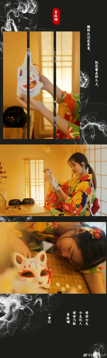 《青狐媚》 灵眸秀骨醉飞仙,媚眼如斯带笑看。 扑蝶百花丛,貌比月玲珑。 折枝向檀郎,狐女与花孰更香? 檀郎反语花更香。把花簪在郎头上。 前世今生🔸青狐媚第一章.今世
