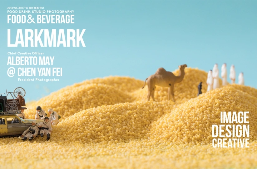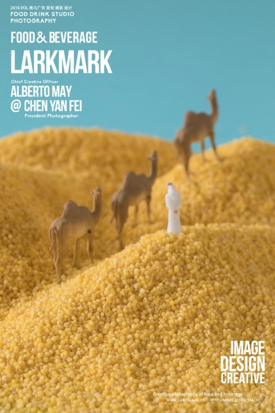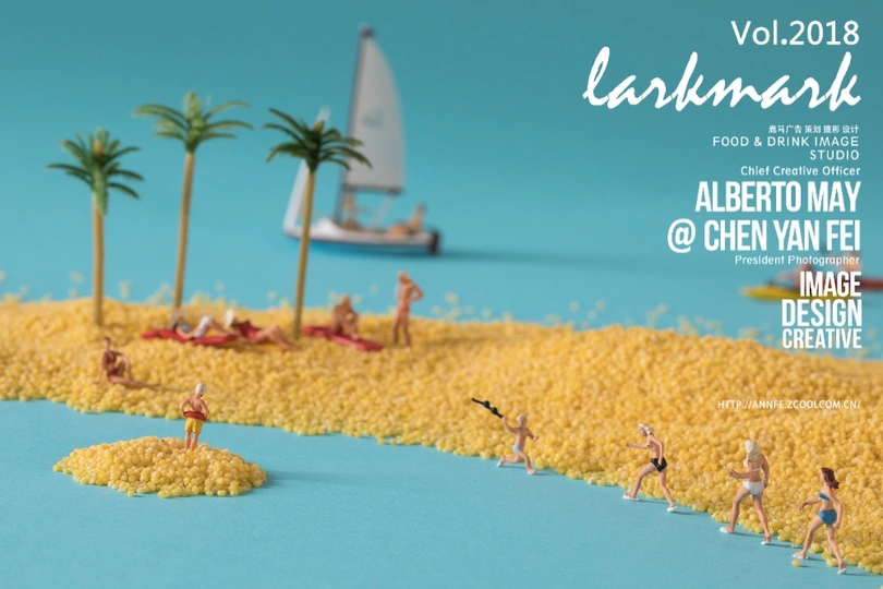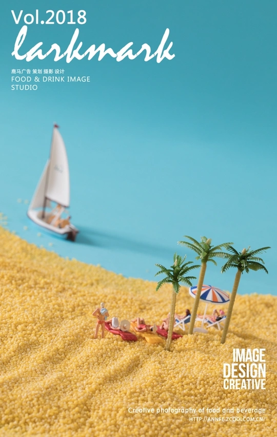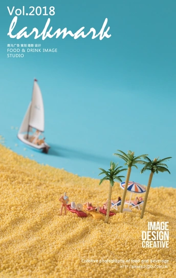 很多摄影师拍摄农产品,都离不开簸箕或是古朴的容器,惯用沉闷的色调。我想换一换风格,常见的农作物搭配缩微小人,换个角度表现,让人耳目一新。虽然也是在收成,换上了蓝色调,跟黄色的小米形成反差,视觉上更抓眼球,也更能突出产品。缩微小人地运用更增加了趣味性,图片的广告性会更强。阳光沙滩度假,这是每个人都喜欢的场景,用小米营造出来,更是推崇每个人都热爱的健康生活方式。