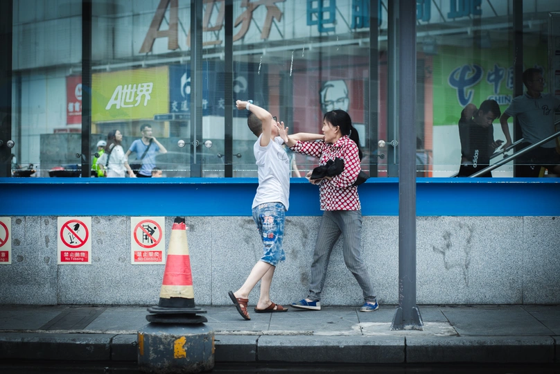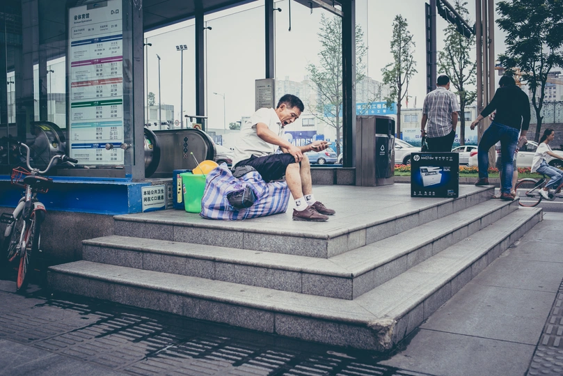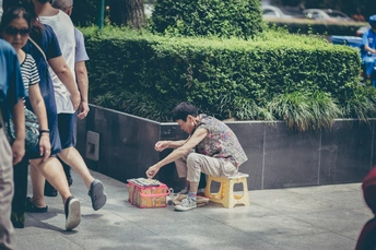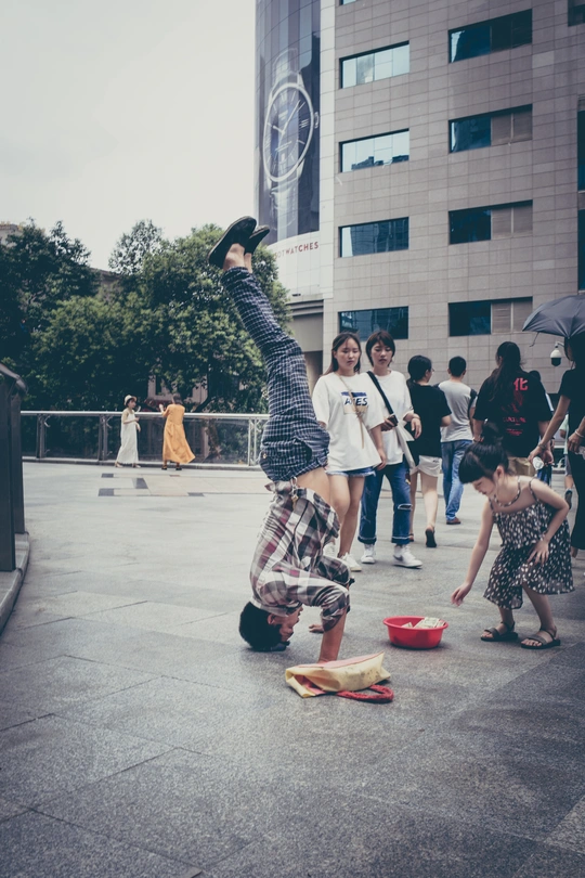 《城市里的一天》 早上7:30 人们踏上了地铁,通往各自一天工作的地方。 上午9:00 一位老妇牵着腿脚不便的老伴儿走过马路。 上午10:00 城市的美丽需要更美的心去细心呵护。 中午12:00 一位清瘦的老人在街边卖花,希望通过自己的双手换取更多的生活来源。 下午13:00 孩子饿了,想吃汉堡;可是从农村来的母亲为了给孩子看病只剩下回去的车费;但孩子并不理解,把拳头砸向了母亲。 (中间三幅写不下文字) 下午18:30 下班高峰期,一位年轻的父亲在天桥上以倒立的方式引起更多的人注意,路过的一位小女孩儿将一块钱放进了这位叔叔面前的红色盆子里。 仅以此方式致敬每一位生活在城市里的人。 摄影/文字:妙诺