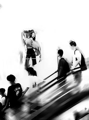 地点:成都IFS 对象:广告牌&行人 阐述:现如今广告牌的出现已经成为商场里重要的景观之一,品牌的力量往往也体现在广告牌的质量。在客流量较大的IFS里,行人与画面的配合,像是黑与白两个不同世界的交叉,碰击出有趣面。