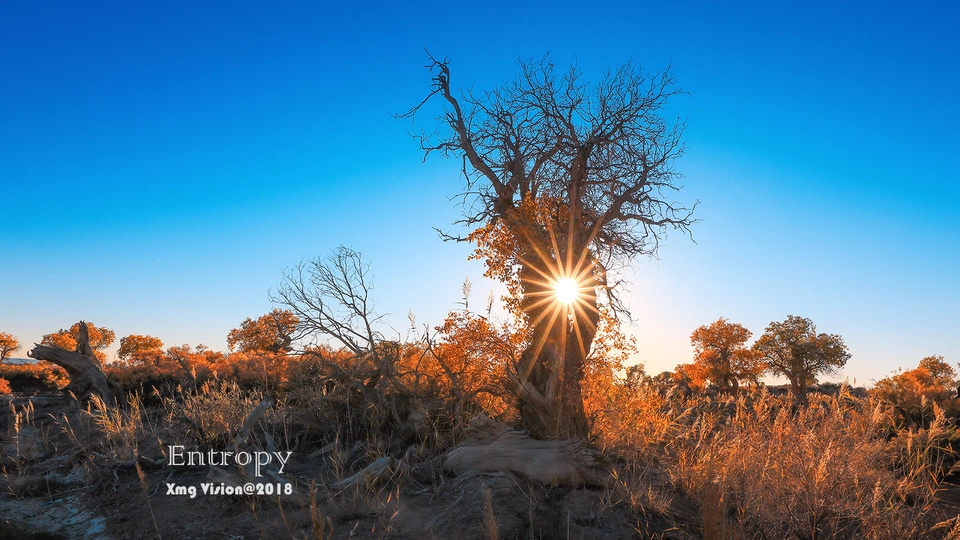 将胡杨树喻为Entropy(熵),源于我第一次亲眼看到胡杨的时候,我首先想到熵,这个概念。或许是因为熵这个概念在胡杨树身上,得到完美的表达。