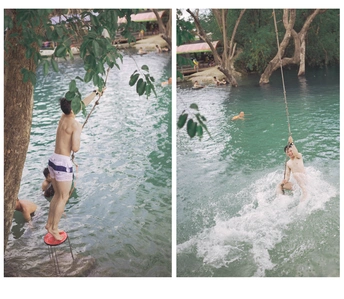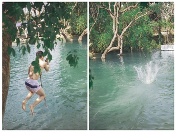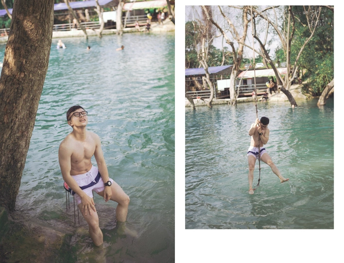 此地叫清水潭,最深处有百米,有潜水爱好者经常来潜水,也有很多人来游泳戏水,我们也来了。