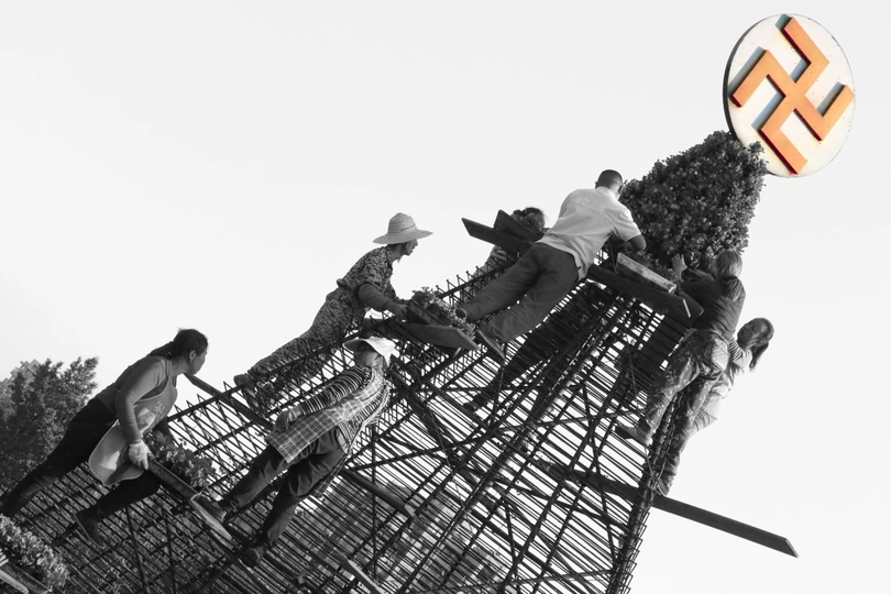 成都 新都区的漫花庄园。花匠在做一个造型