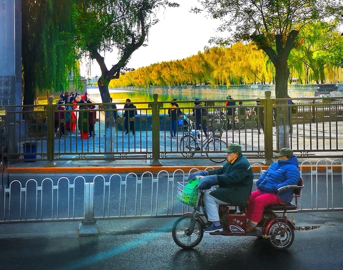 傻乐华为p20pro--专车上的这位女主儿可比当年这故宫筒子河边行走的嫔妃们滋润多了