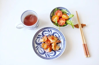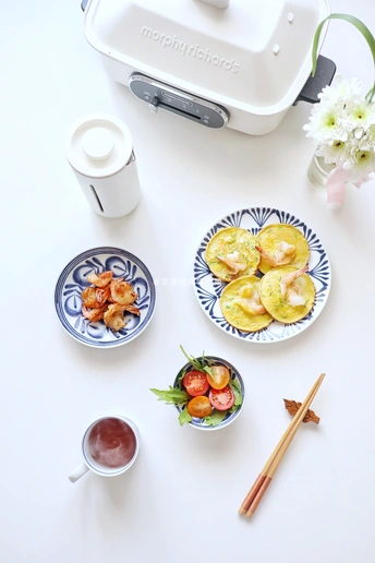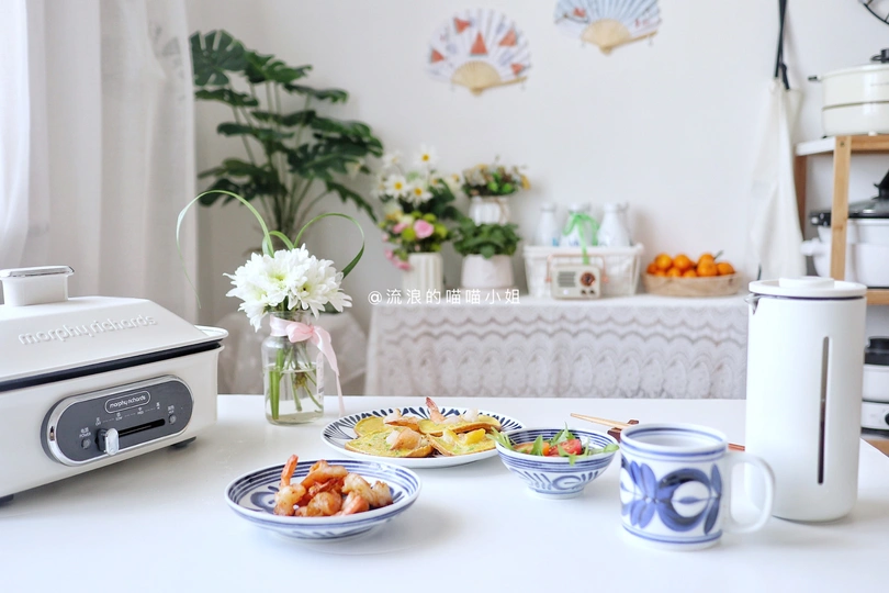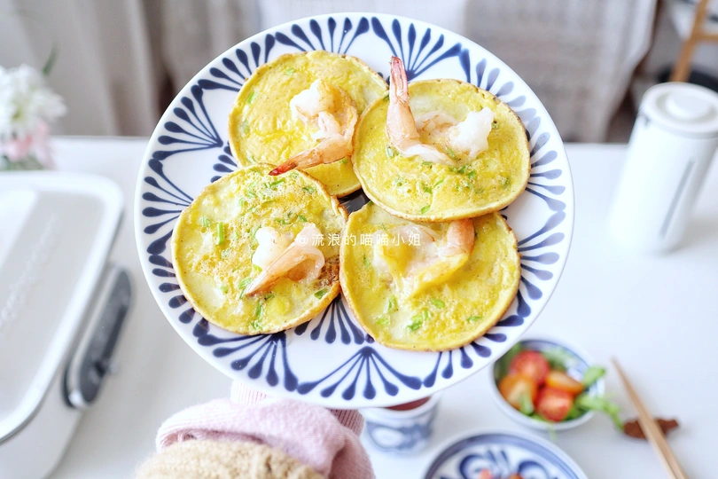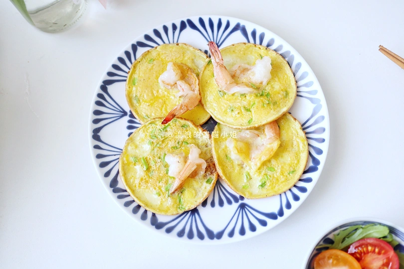 「流浪の喵喵早餐」275 🥗早餐:【插播白色摩飞锅】蛋饼蝴蝶虾+酱油虾+苦菊小番茄+热泡包咖啡 🍡制作: 👉🏻①买的火锅食材蝴蝶虾(🤣原来我的火锅食材还没吃完,还有鱼丸也在冷冻室里,啊啊啊啊~),提前一晚放入冷藏室里解冻,取出来后撒点生粉。 👉🏻②鸡蛋加葱花盐白胡椒粉搅散,待用。 👉🏻③六圆盘烧热,倒油,把虾放在盘子里略煎,倒入蛋液成饼装,凝固成型即可出锅。 👉🏻④多余的蝴蝶虾也在锅里煎着,撒点酱油略烧出锅,另一种风味。 ⏰用时:50分钟 💰花费:火锅蝴蝶虾15元(10只)+2个鸡蛋1元+小番茄约0.5元+苦菊(自己种的),共计16.5元 😸絮叨:写不下了~