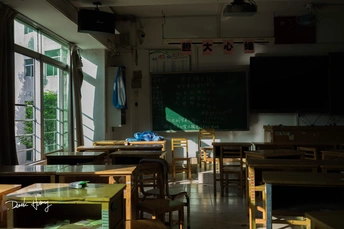 高考结束,大家都离开学校,留下这空荡荡的教室