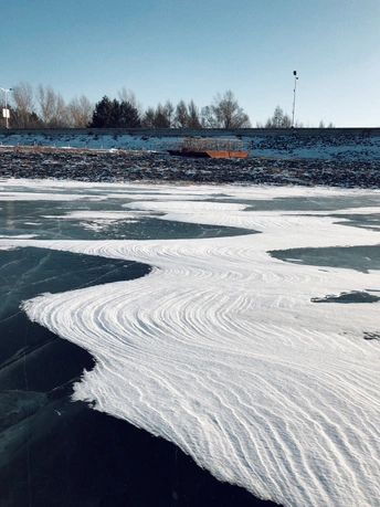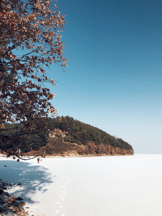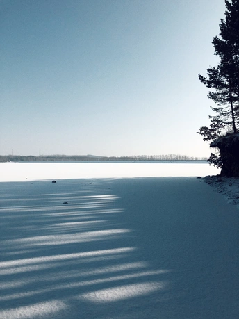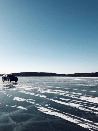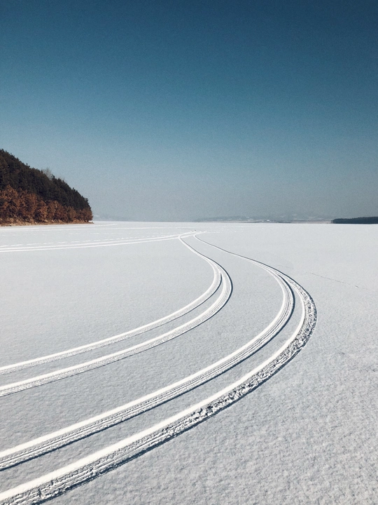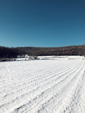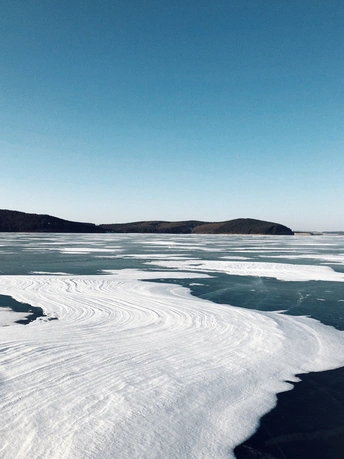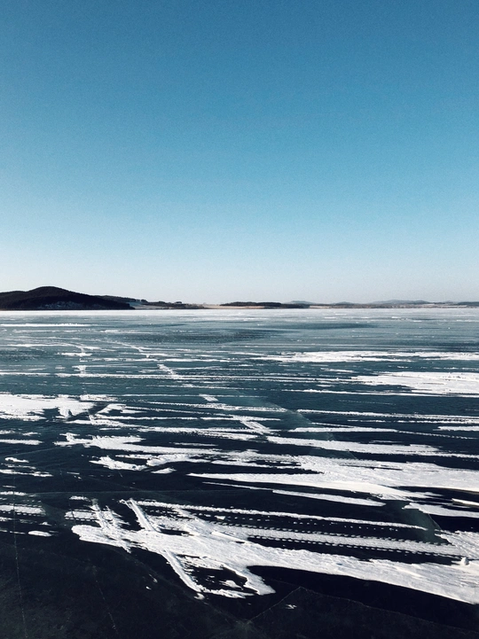 雪,安静地下了一整夜,湖面干净得像白色的手帕,走在上面咯吱咯吱地响,松软而有弹性。太阳明亮而温柔,光影有些迷离得不真实,像极了童话。 手里捧着的雪——温暖的;舔舔脸上的光——寒冷的…… 夜里就刮起了狂风! 第二天,湖面上的雪没有了影踪,仅存下来的被刻上了风的印迹。车子在冰面上自动漂移,突然熄火。狂风像要将一切扫除,站不稳也走不动。 前一晚还能安静地站在雪面上——向西,看梦幻的日落;向东,看满月初升;而这一刻却像战斗,又知自己根本是无力的,所以,只能逃离……