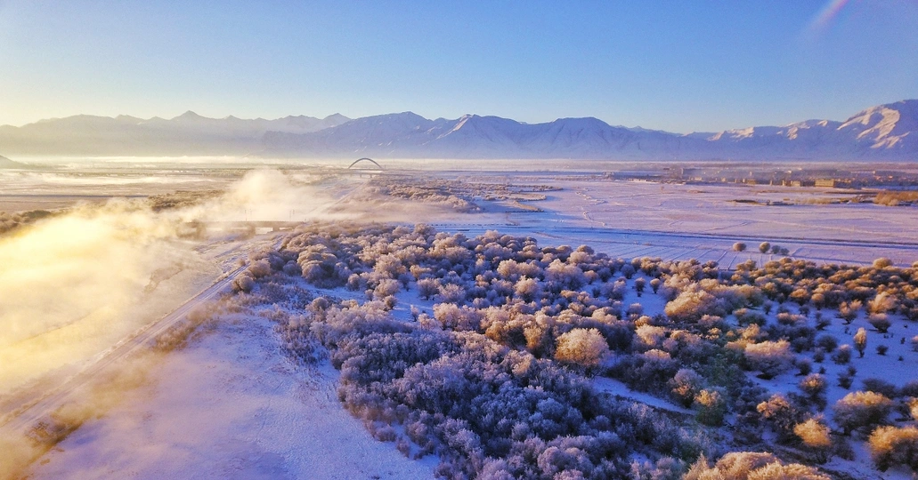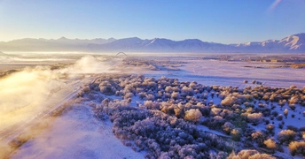 这是我在日喀则大雪过后航拍的红树林,在晨光中变得梦幻,晨曦,雾凇,构成了一幅天然画卷!