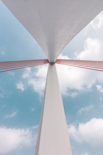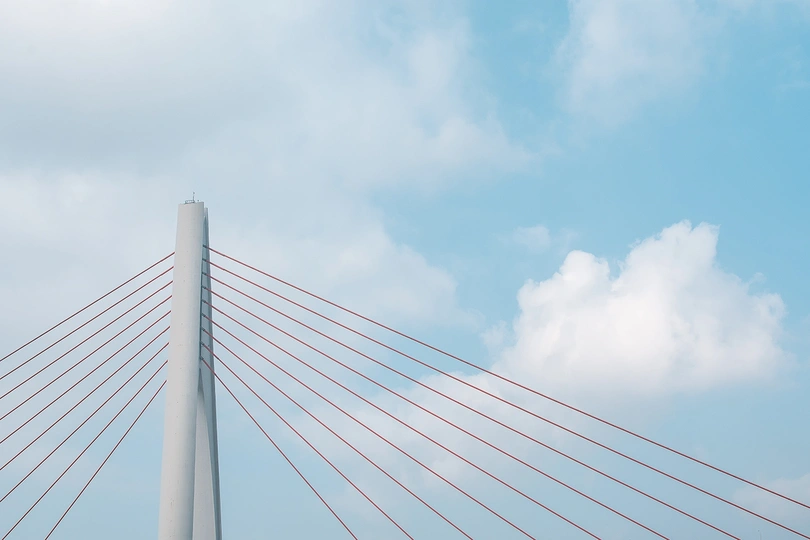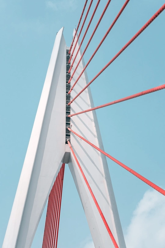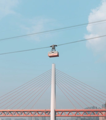 冬日山城难得晴天 阳光下的东水门大桥 橙与蓝搭配得十分协调