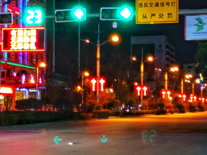 翻看手机相册,发现前天随手拍的一张照片,炫光把红绿灯箭头显示成相反的方向了。