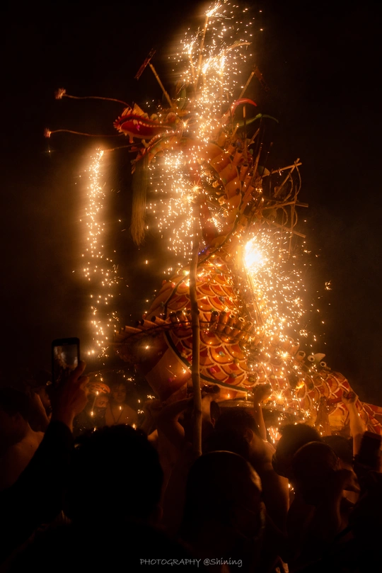 祥龙献瑞 吉兆丰年。 记第一批国家级非物质文化遗产名录 梅州市埔寨镇元宵烧火龙 🎆 浴火而生 视觉盛宴 烧火龙真的太刺激太壮观了!! 至今已有300多年历史 是当地人们为祈求新的一年风调雨顺 百业兴旺 于元宵节当天晚上举行的祈福活动。在当地的说法是 如果皮肤被烫出了泡 那就意味着今年一定会发大财。