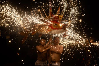 祥龙献瑞 吉兆丰年。 记第一批国家级非物质文化遗产名录 梅州市埔寨镇元宵烧火龙 🎆 浴火而生 视觉盛宴 烧火龙真的太刺激太壮观了!! 至今已有300多年历史 是当地人们为祈求新的一年风调雨顺 百业兴旺 于元宵节当天晚上举行的祈福活动。在当地的说法是 如果皮肤被烫出了泡 那就意味着今年一定会发大财。