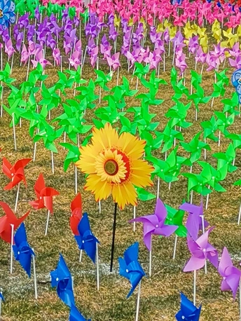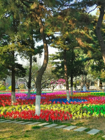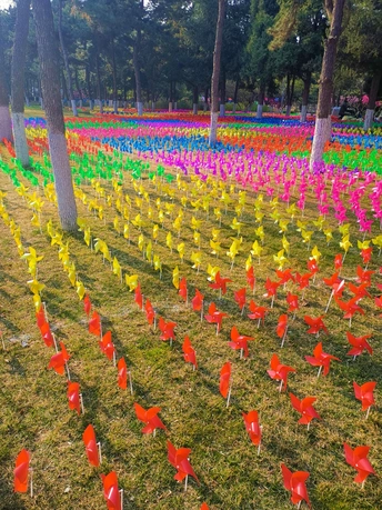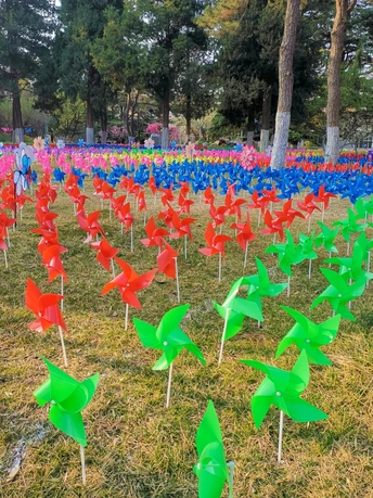 中国儿童中心筹办风车节。使南广场的林荫之中美伦美奂,春意盎然。随手拍摄。