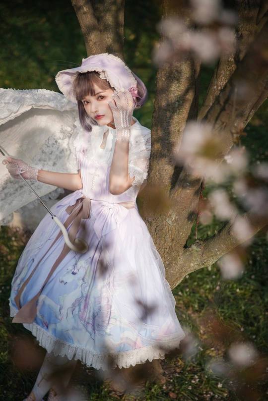 少女在晨光中路过落花小径, 留下被脚尖带起的纷飞花瓣。 “哒哒哒……” 深深浅浅的消逝在风花流莺的酬唱之中 摄影/ @枕鹤 出镜/@-谢安然-