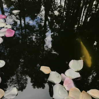 大理寂照庵,花瓣掉落在水面,鱼儿终于可以亲吻到它