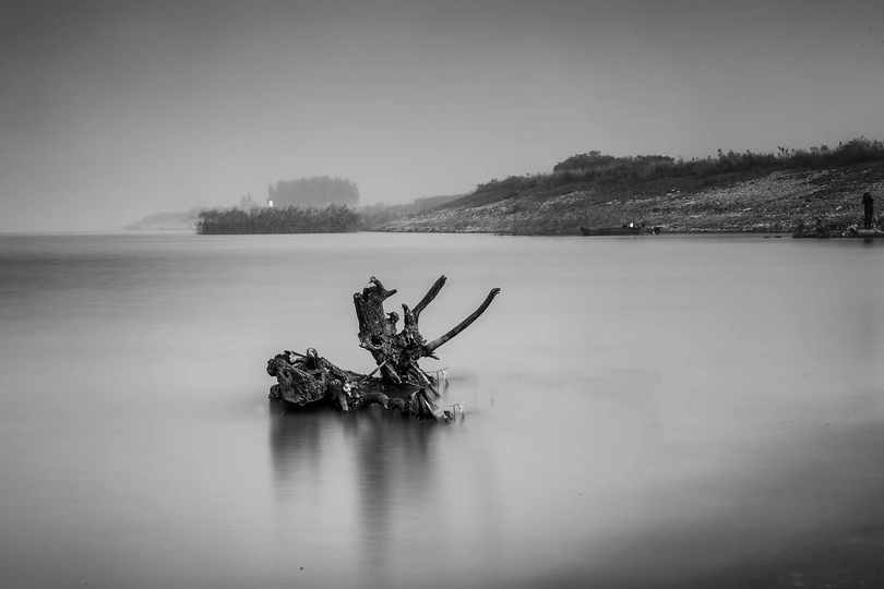 拍摄于巢湖湿地,湖中枯树孤独寂寞。