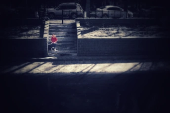 沿着水渠拍春, 镜头对准她的一瞬间, 回应一抹微笑。